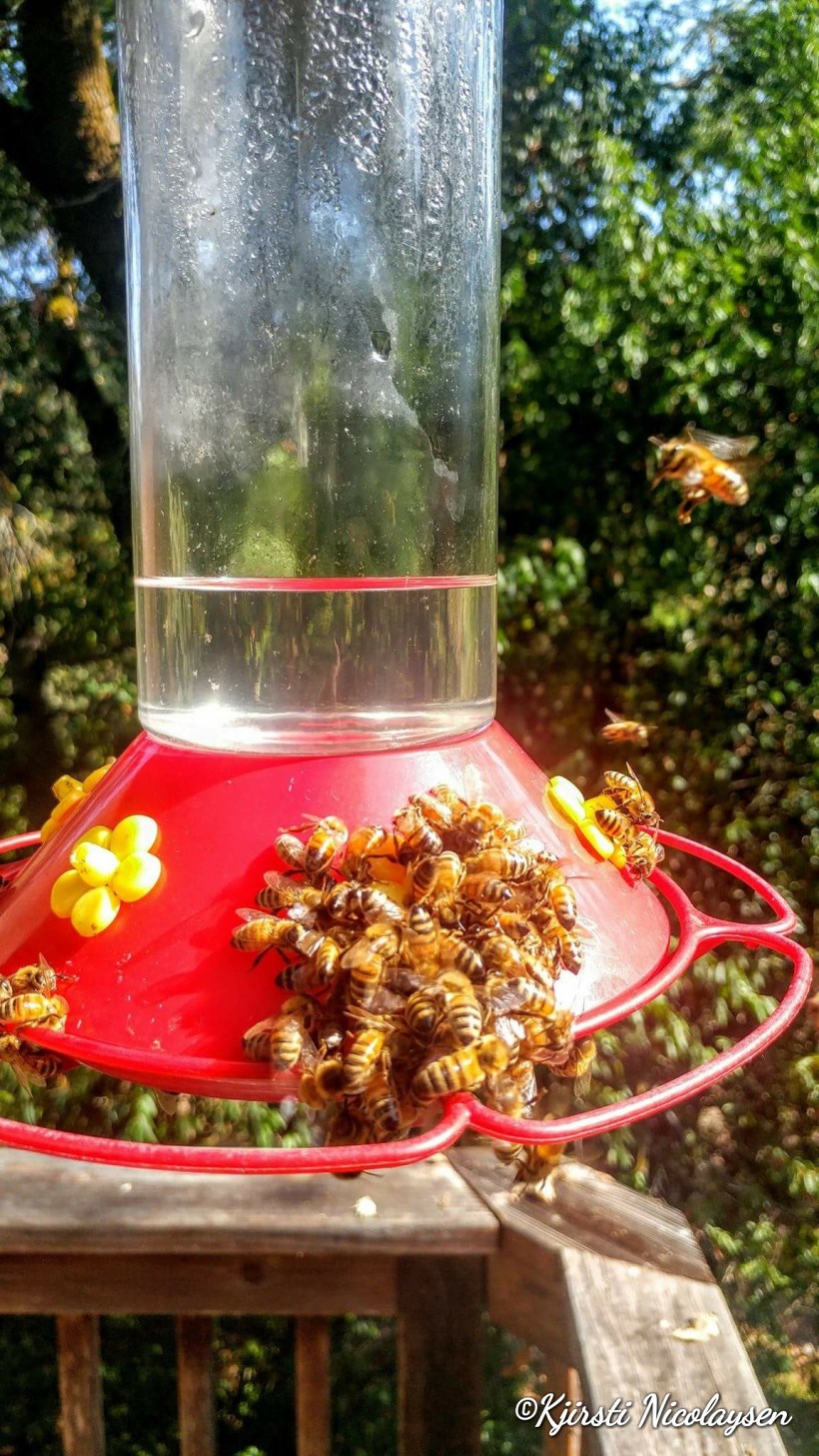 swarms of bees nip at the nape of her neck